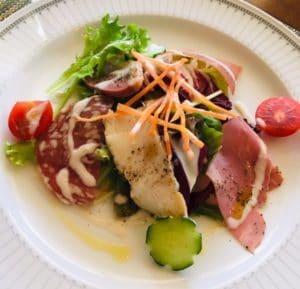 〇お肉のオードブル(カモのスモークやハーブチキン、生ハムと豪華でした)