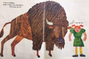 最後に、エリックカールは「身体を満遍なく動かせるように登場する動物と動作を熟考した」と述べています