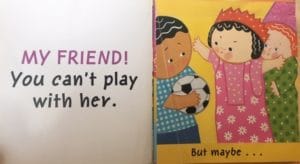 可愛い幼児が、お友達とのやり取りを学んでいく絵本です。「お友達と一緒に仲良く遊ぶ」「じゅんばんこ」などが絵本を読めば自然と身につきます。「私のお菓子よ、食べちゃ駄目!「「僕の友達だよ、遊んじゃ駄目!」などと子供がつい言ってしまう場面が沢山描かれています。そんな時どうしたらいのかな?