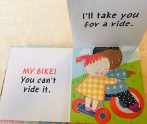 「これは私の人形よ。遊んじゃだめ!」「これは僕の自転車。乗っちゃだめ!」なんて子供が一度は言いそうなセリフですよね。そんな時どうしたら良いのかな?こんな風に言ってみたら?とわかりやすく描かれています。