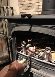 1、火の焚き始めから250℃に達するまでの間→ 250℃まで上がると上昇気流が安定するので煙が煙突を通じて上に吐き出されるので、それまでの間は換気が必要。