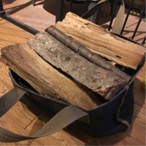 それも、比較的小さく薄いものを入れ、最後に10センチ角位の薪を入れていきます。