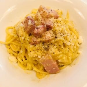 ここのパスタは太めでもっちもち♡ カルボナーラも1cm*3cmくらいの厚めベーコンが本当に美味です。