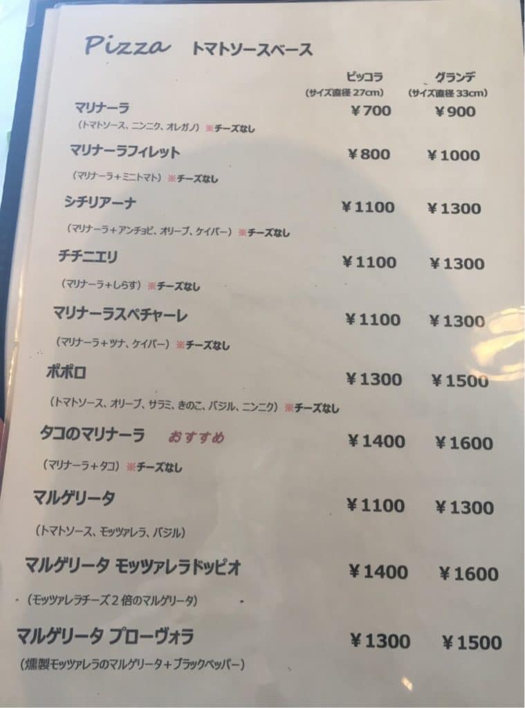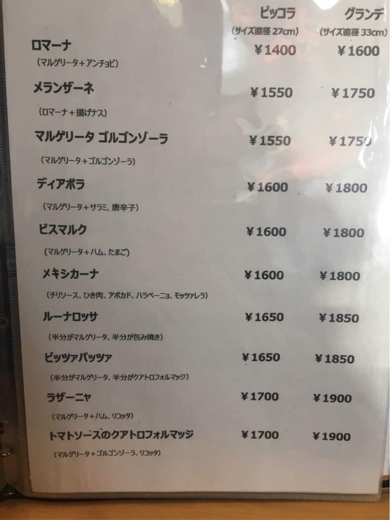 ※大人4名と子供4歳(直前にバナナ1本食べていたため、食欲あまりなし)でグランデ三枚にしました。グランデは33センチあるので、結構大きいです。参考までに、サルバトーレのLサイズがジンガラのピッコラのイメージ。